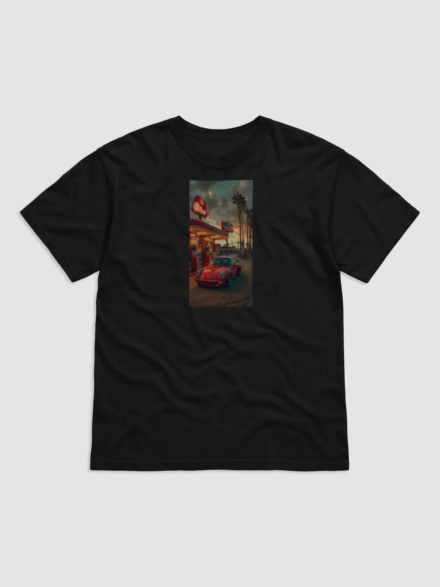 Step into nostalgia with our Comfort Colors Garment-Dyed T-Shirt featuring a vintage scene of a red car at a 'Chevron' gas station during sunset. Made of 100% ring-spun cotton, this heavyweight tee offers a relaxed fit for all-day comfort. Embrace the retro vibe in style.